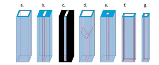 Light’s travel length via the cuvette. Cuvettes A, as well as C both, have 10 millimeters of pathways. Cuvettes b, c, and internal size of f are the same (2 x 10 millimeters), while e and g have distinct exterior diameters.